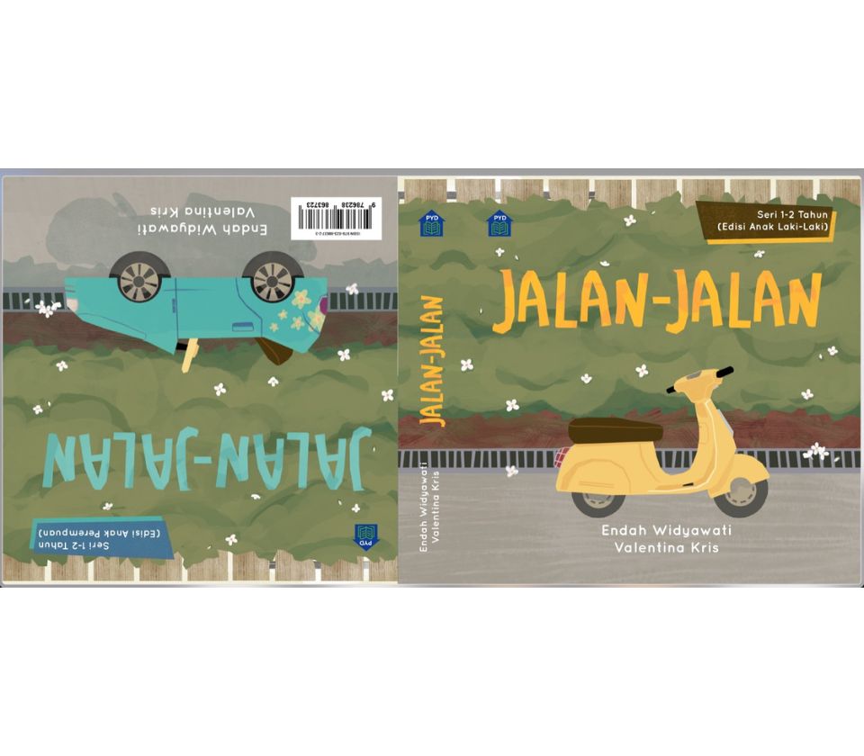 Bukunya tanpa teks, jadi saya bisa bercerita sesuai kebutuhan anak.
